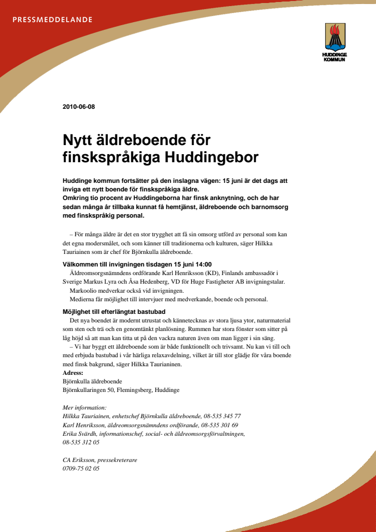Huddinge kommun fortsätter på den inslagna vägen: 15 juni är det dags att inviga ett nytt boende för finskspråkiga äldre.