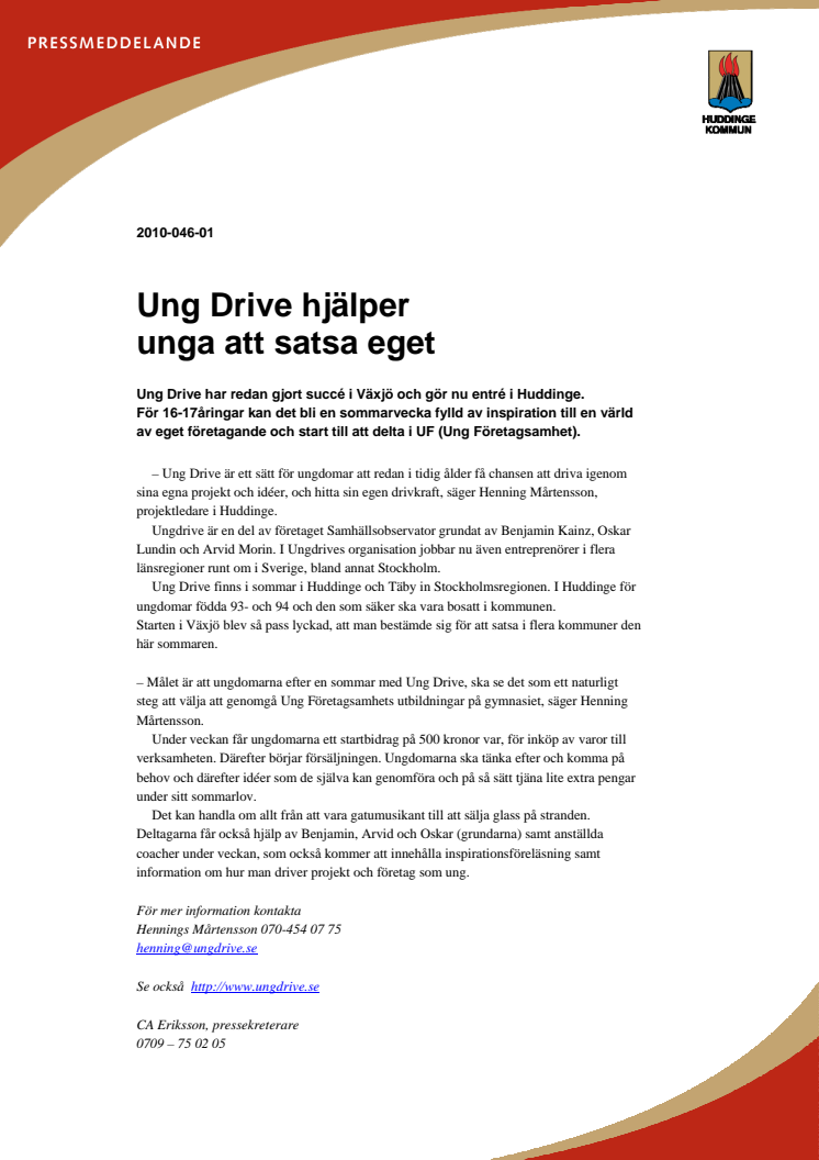 Ung Drive har redan gjort succé i Växjö och gör nu entré i Huddinge.