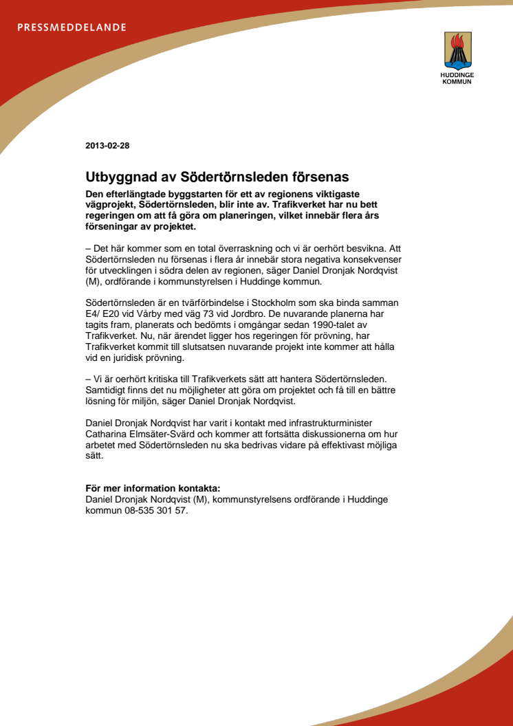 Den efterlängtade byggstarten för ett av regionens viktigaste vägprojekt, Södertörnsleden, blir inte av. Trafikverket har nu bett regeringen om att få göra om planeringen, vilket innebär flera års förseningar av projektet.