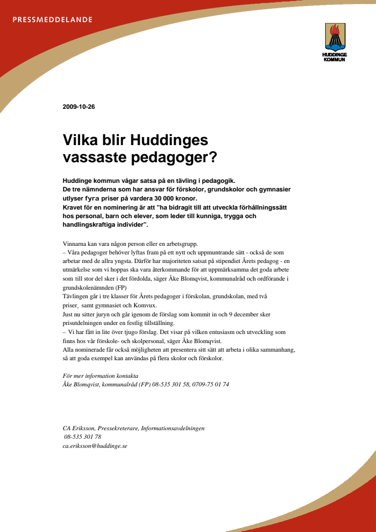 Huddinge kommun vågar satsa på en tävling i pedagogik.