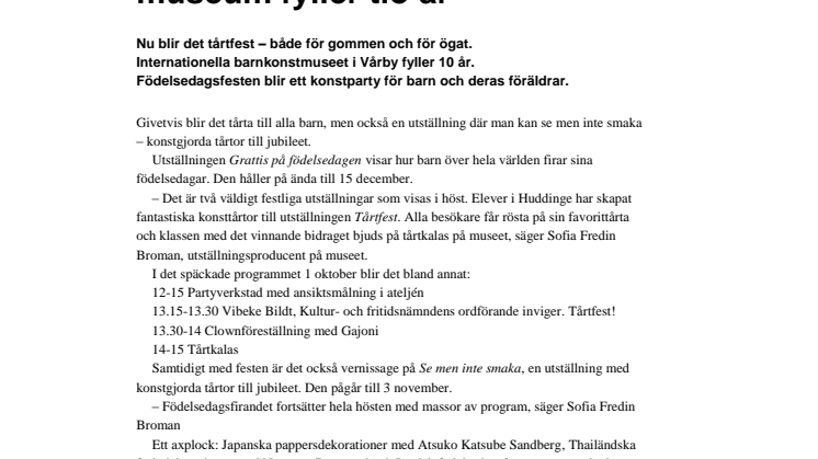 Internationella barnkonstmuseet i Vårby fyller 10 år.