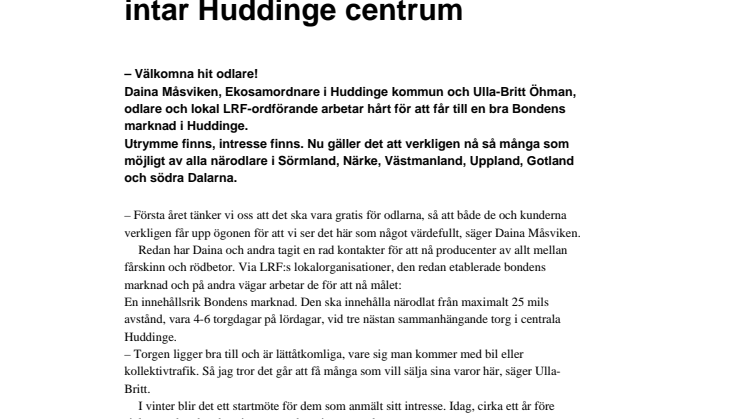 Bondens marknad intar Huddinge centrum