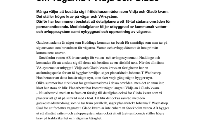 Många väljer att bosätta sig i fritidshusområden som Vidja och Gladö kvarn. Det ställer högre krav på vägar och VA-system.