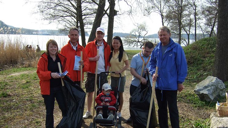 Folkpartiet städade upp skräp vid Vårby brygga under skräpplockardagarna i Håll Huddinge rent kampanjen i söndags. Passerande Vårbybor blev glatt överraskade och flera kom fram och ville diskutera politik.