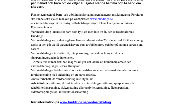 Mer information på www.huddinge.se/vardnadsbidrag