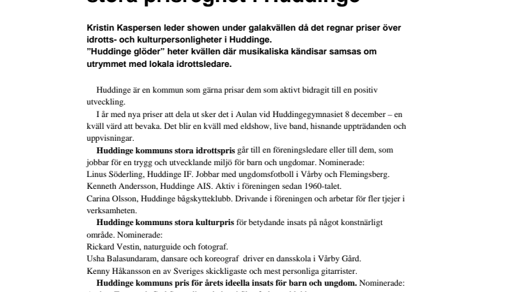 Kristin Kaspersen leder stora prisregnet i Huddinge
