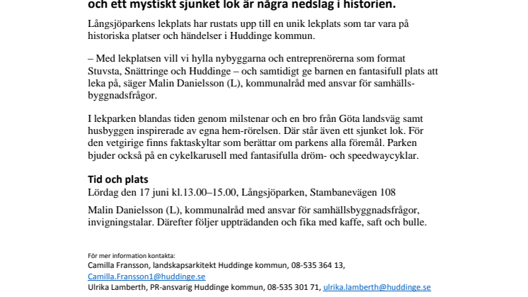 Lek i Huddinges historia – ny lekpark invigs 17 juni