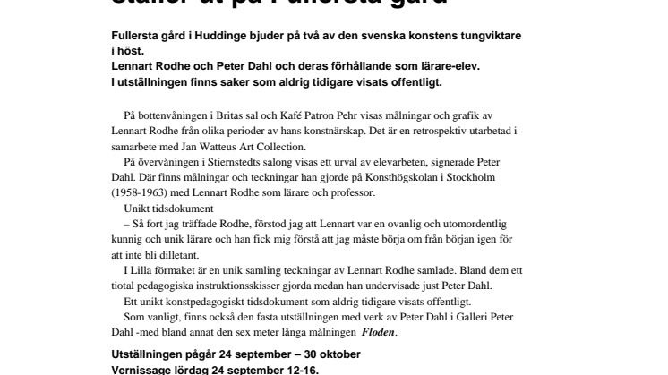 Lennart Rodhe – Peter Dahl ställer ut på Fullersta gård