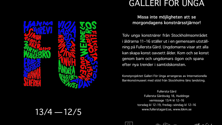 Konstprojektet Galleri För Unga arrangeras av Internationella Barnkonstmuseet med stöd från Stockholms läns landsting.