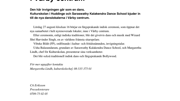 Lördag 27 augusti klockan 16 börjar en färgsprakande indisk ceremoni, som öppnar det nya samarbetet i helt nyrenoverade lokaler, inne i Vårby centrum.