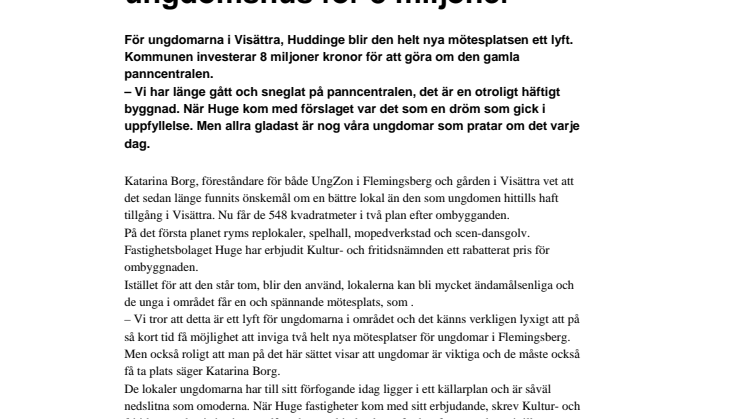 För ungdomarna i Visättra, Huddinge blir den helt nya mötesplatsen ett lyft. Kommunen investerar 8 miljoner kronor för att göra om den gamla panncentralen.