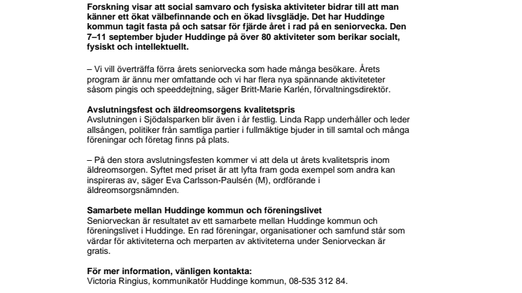 Mer om Seniorveckan och program: huddinge.se/seniorveckan