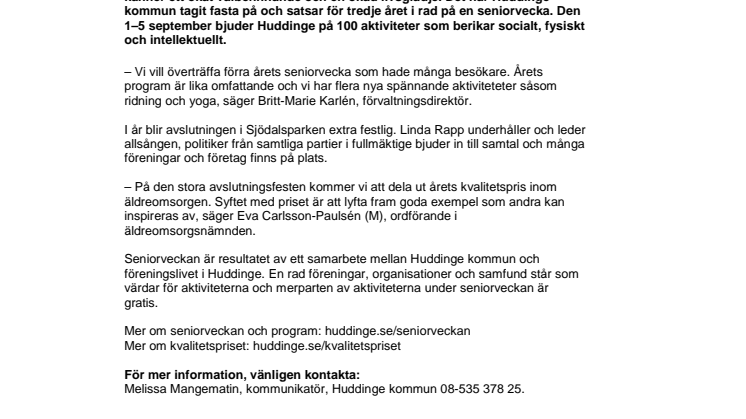 Mer om seniorveckan och program: huddinge.se/seniorveckan