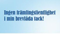 – Vi i Folkpartiet är uppriktigt förbannade på alla anklagelser som riktas mot våra invandrare från vissa partier. Invandrare hängs ut som orsaken till alla möjliga problem i samhället. Det känns helt fel. Därför har vi tagit fram en klisterlapp med texten ”Ingen främlingsfientlighet i min brevlåda tack!” berättar Malin Danielsson, kommunalråd (FP).