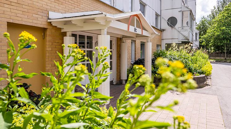Terapivägen 8 är först ut i renoveringen av de 397 lägenheterna runt samma bostadsgård i Grantorp, Flemingsberg. Här kommer renoveringsarbetet pågå etappvis till 2027 – och därefter väntar ytterligare drygt 800 lägenheter i Grantorp på renovering.