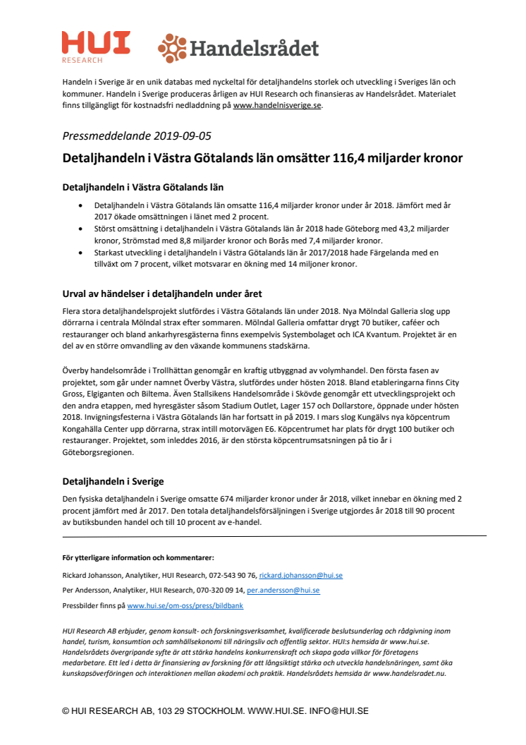 Detaljhandeln i Västra Götalands län omsätter 116,4 miljarder kronor