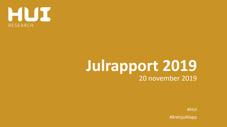 HUI Research följer de olika detaljhandelsbranschernas utveckling och presenterar varje år en prognos för julhandeln. Prognosen för december månads totala detaljhandelsförsäljning 2019 är en omsättning på 79,8 miljarder kronor, vilket innebär en ökning med 3,0 procent jämfört med december 2018. I omsättningen ingår såväl daglig- som sällanköpsvaror. I december uppgår merförsäljningen i jämförelse med årets genomsnittliga månad till cirka 1 300 kronor per person.