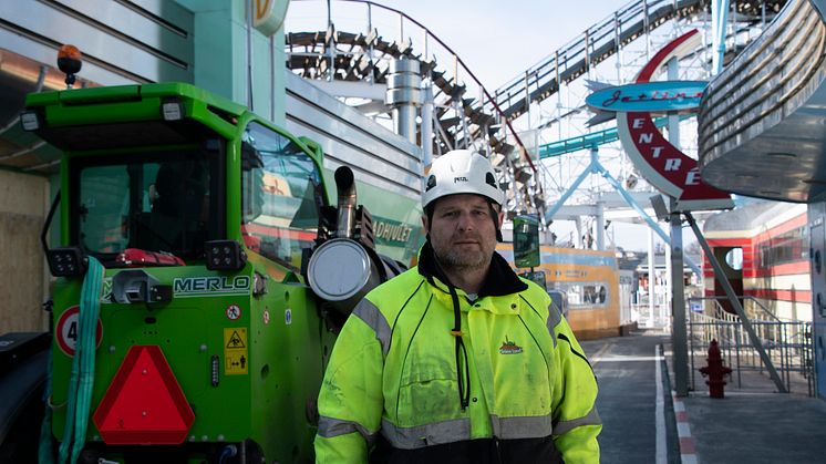 – Vi har både ett antal mindre teleskoplastare som når runt tio meter och ett gäng lite större runtomsvängande maskiner som når upp till 30 meter. Självklart är de Merlo allihop, säger Mattias Hallin.