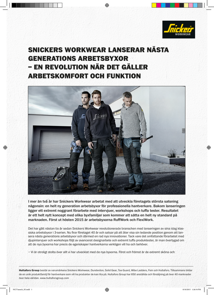Pressrelease: Snickers Workwear - nästa generation arbetsbyxor