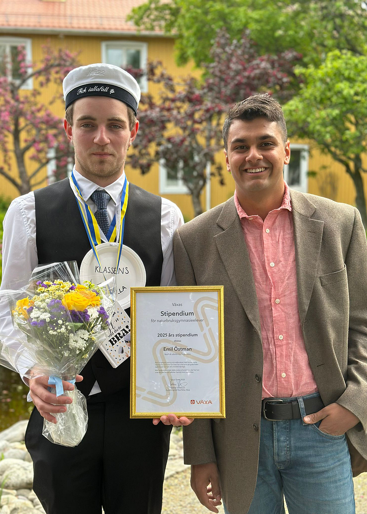 Studentdagen 2025 blev extra minnesvärd på Nordvik Naturbruksgymnasium. Utöver glädjen över avslutade studier delades ovanligt många stipendier ut till avgångselever – och allra mest iögonfallande var att Emil Östman tilldelades det nationella Växa-stipendiet, ett av de mest exklusiva inom naturbruksprogrammet lantbruk.