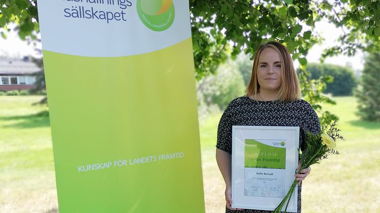 Sofie Burvall, Tavelsjö har tilldelats Hushållningssällskapet Norrbotten-Västerbottens nyinstiftade ungdomsstipendium Grön framtid och belönas med 25 000 kr. Stipendiets syfte är att uppmuntra eftergymnasiala studier inom gröna näringar och att tillgodose framtida kunskapsbehov i de nordliga länen.