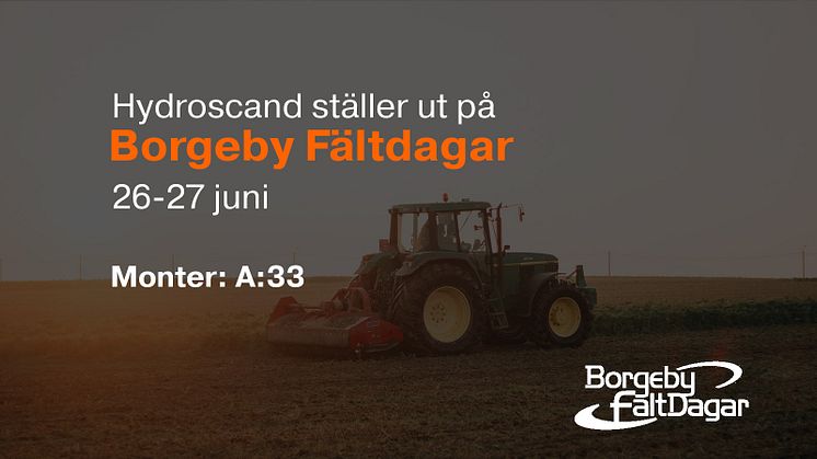 Den 26-27 juni är det dags för Borgeby fältdagar och självklart hittar ni Hydroscand på plats även i år.