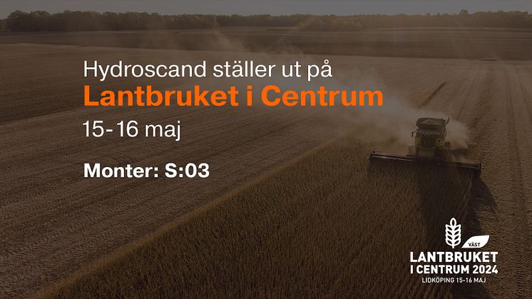 Lantbruket i Centrum är en mötesplats med fokus på lantbruk, mitt i Lidköping. På plats kommer Hydroscand att dela med sig av nyttan och värdet med deras produkter och tjänster, speciellt anpassade för lantbruket. Exempel på en sådan tjänst är deras slangservice SlangExpress, som erbjuder både akuta slangbyten och förebyggande underhåll direkt hos kunden.