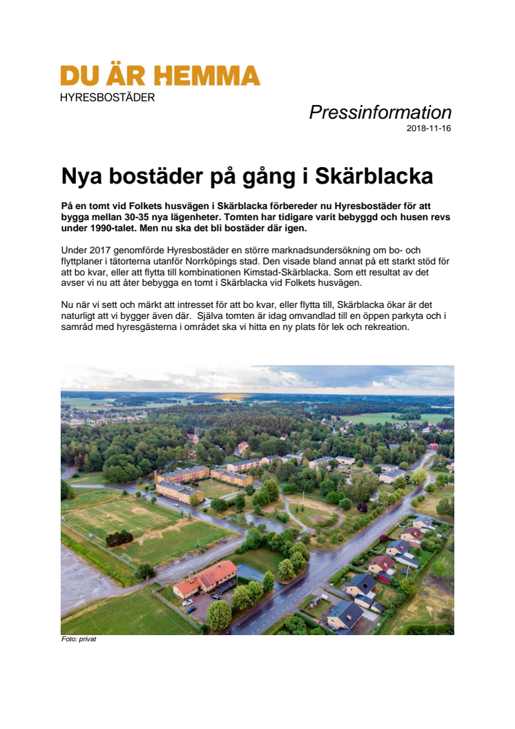 Nya bostäder på gång i Skärblacka