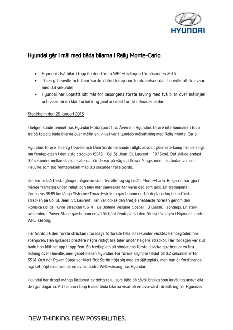 • Hyundais två bilar i topp 6 i den första WRC-tävlingen för säsongen 2015