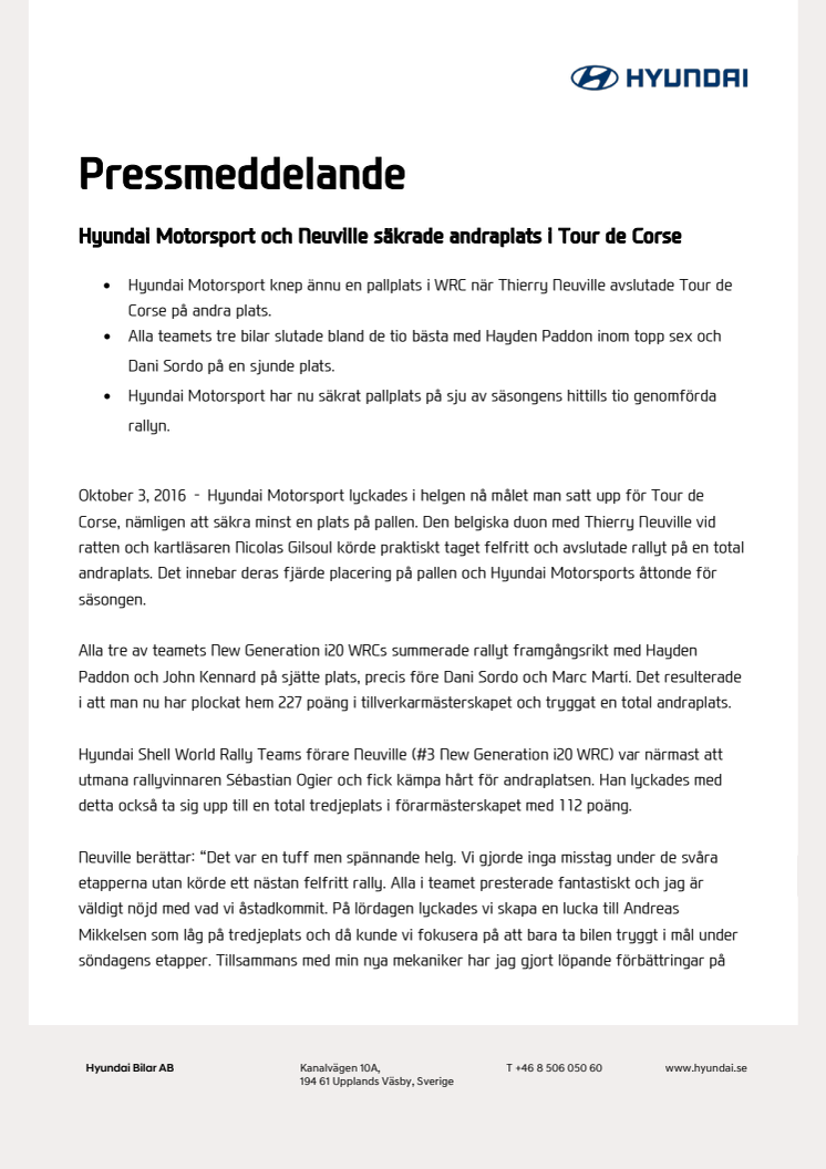 Hyundai Motorsport och Neuville säkrade andraplats i Tour de Corse
