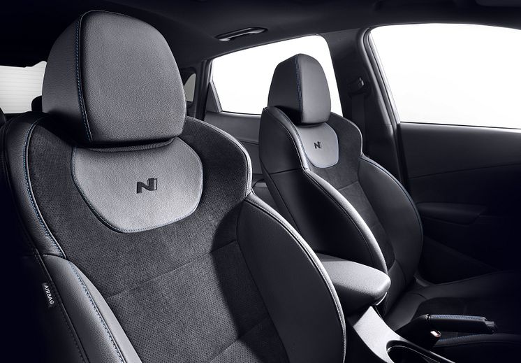 KONA N:s interiör förmedlar även den andan i N med varumärkesspecifika detaljer som färgdetaljer i Performance Blue, säten, ratt, växelspak och metallpedaler.