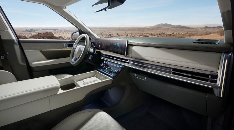 Den nya interiören introduceras med användbara bekvämlighetsfunktioner, såsom en UV-C-steriliserande bricka, dubbla trådlösa mobilladdare, för att skapa en sofistikerad användarupplevelse med SUV-lik praktikalitet. SANTA FE:s Panoramic Curved Display (första i sin klass), som omfattar den digitala instrumenteringen och infotainmentsystemet på 12,3 tum, förbättrar förarvyn och skapar en känsla av lyx.