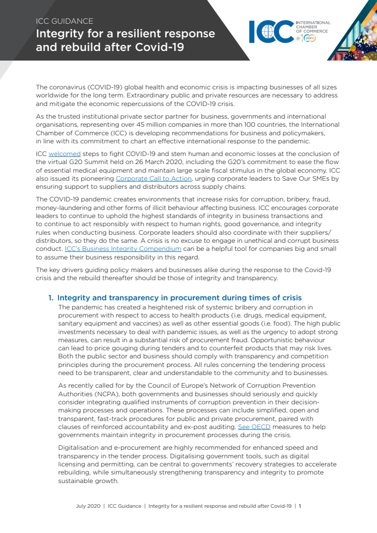 ICC Guidance: Integrity for a resilient response and rebuild after Covid-19