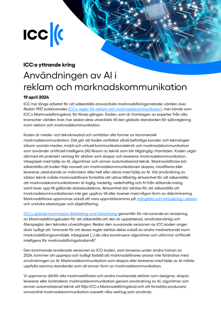 ICC:s yttrande kring användningen av AI i reklam och marknadskommunikation