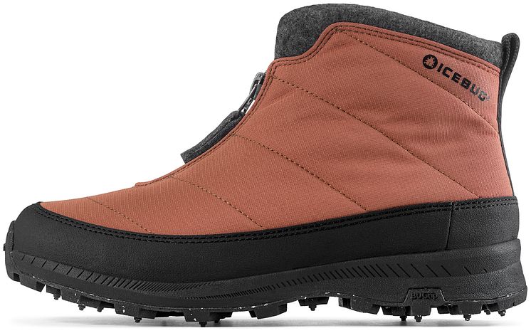 Upptäck säsongens snygga nyhet Sala BUGrip! Det här är vardagsskon som prickar alla rätt – varm, skön och lätt. Ovandelen är i mjuk quiltad textil, med ett slitstarkt och vattenavvisande yttre av återvunnen ripstop-polyester. Inuti värmer den gott med foder i återvunnen ull och polyester. Skon försluts med en dragkedja framtill som gör den lätt att ta på och av. Nederdelen täcks av en mudguard som skyddar mot smuts och slask, och som dessutom gör den enkel att rengöra. Undertill hittar du Icebugs världsledande grepp – 17 dubbar i karbidstål som gör att du kan röra dig fritt och avslappnat på såväl is som trottoarer. Sala lanseras i kulörerna Rust, Pecan och Black.