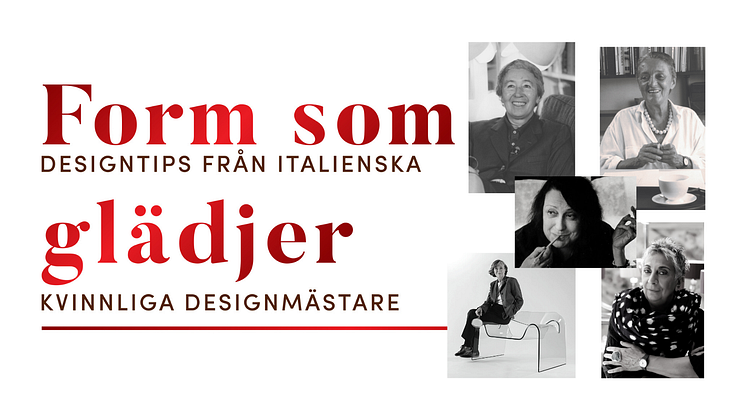 "Form som glädjer – Designtips från italienska kvinnliga designmästare" är det nya projekt som utvecklats av italienska ambassaden i Stockholm i samarbete med italienska kulturinstitutet C.M. Lerici, som båda deltar i det årliga temaevenemanget Italian Design Day 2021, som främjas av det italienska utrikesministeriet för internationellt samarbete. Mellan den 28 juni och den 11 juli 2021, kommer över 2000 affischer tillägnade fem italienska kvinnliga formgivare inom internationell design att visas i Stockholms kollektivtrafiknätverk: Gae Aulenti, Lina Bo Bardi, Cini Boeri, Anna Castelli Ferrieri och Paola Navone.
