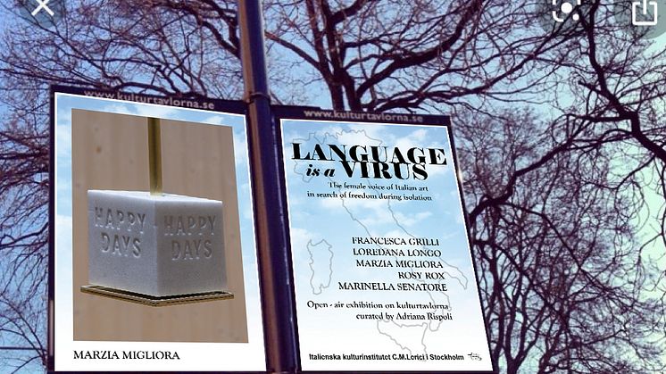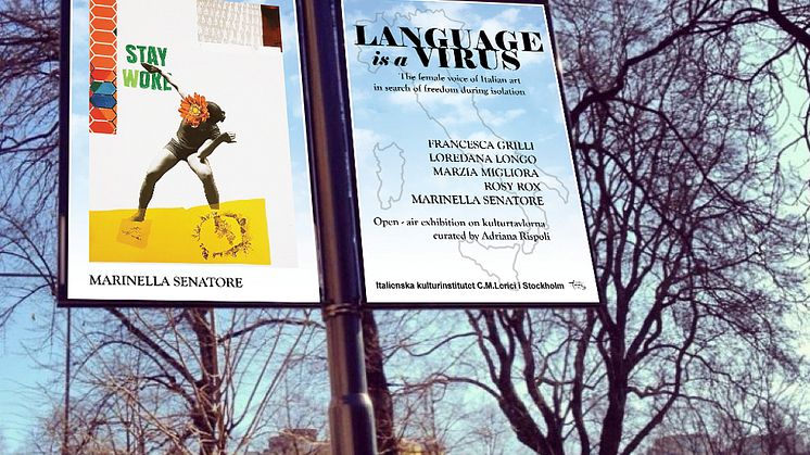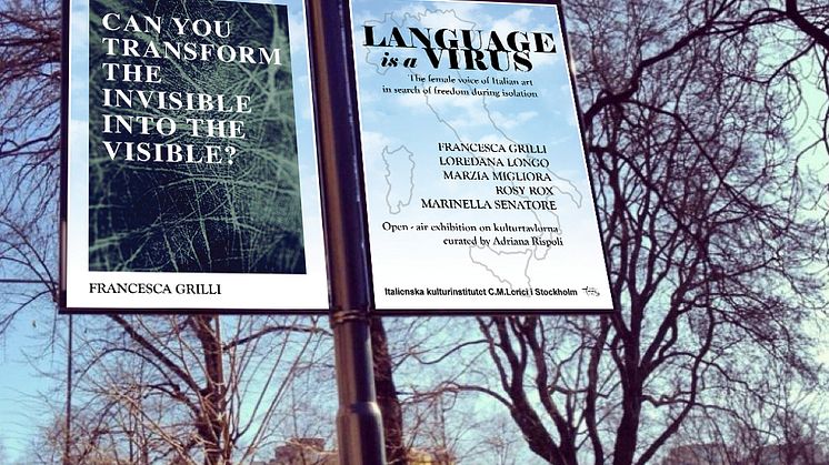 LANGUAGE IS A VIRUS is an open-air exhibition curated by Adriana Rispoli for the Italian Cultural Institute in Stockholm during the Covid19 emergency. As a response to the suspension of all the activities, art pursues its continuous dialogue with life by experimenting new expressive formats.