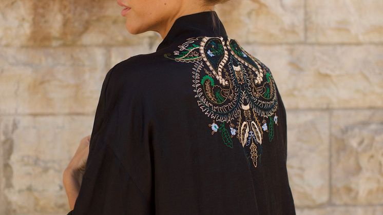 - Vi har tagit fram en härlig kapselkollektion bestående av 6 plagg. Vackra paisleymönster i djupa gröna och blåa nyanser, kvalitéer med fint fall och rika broderier gjorda av silkestråd med underbar lyster kommer att ge din garderob det lilla extra. Designen är tidlös så du kommer alltid kunna plocka fram dessa plagg och använda både till vardags och till fest, säger inköpschef Lena von Segebaden.