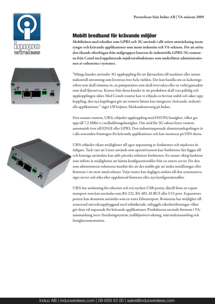 Mobilnäten med tekniker som GPRS och 3G används i allt större utsträckning inom VA-applikationer. ER75i, UR5i och UR5 är routrar som erbjuder trådlös uppkoppling via GPRS, EDGE eller 3G. Routrarna har anslutning för ethernet och USB, därtill finns anslutningsmöjligheter för RS-232, RS-485, M-BUS eller I/O-signaler. Routrarna hanterar 3G anslutningar som HSUPA och HSDPA