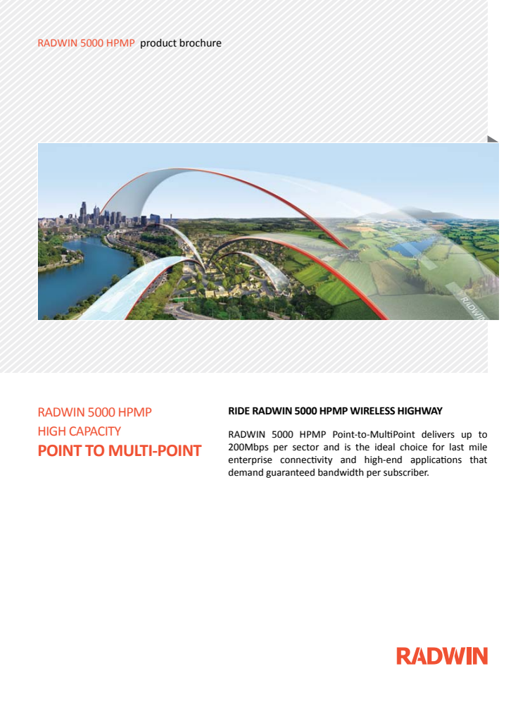 RADWIN 5000 HPMP levererar trådlös kommunikation på 200 Mbit/s per sektor och är avsedd för situationer som kräver höga prestanda och som kan leverera garanterad bandbredd till användare. Radiolänken har full duplex kommunikation och ethernetanslutning.