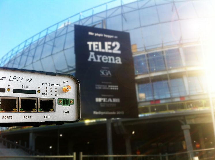 LR77 v2 framför byggarbetsplatsen Tele2 Arena.