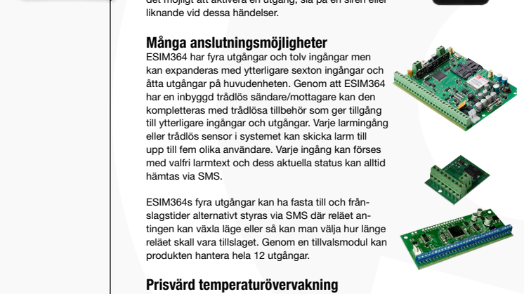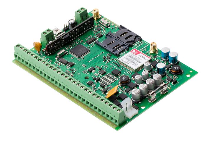 ESIM364 levereras i form av ett kretskort med antennanslutningar och skruvplintskontakter för elektriska anslutningar.