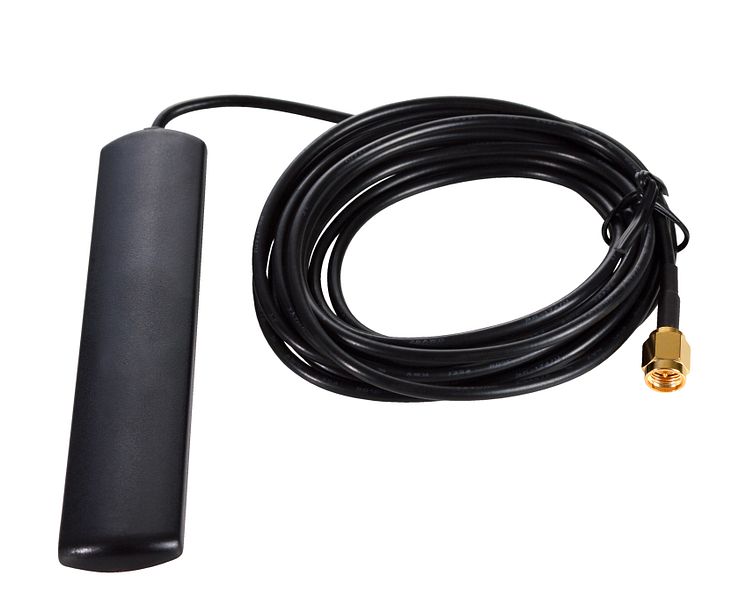 En självhäftande antenn med 2,5 meters antennkabel. Antennen monteras på vägg eller fönster och passar för GSM, 3G, 4G (låga 4G-banden) och Wifi. Den har 2-3 dBi antennvinst (Gain) och SMA-antennkontakt.
