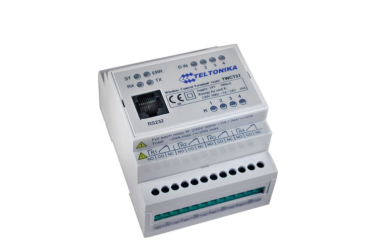 TWCT22 har analoga och digitala I/O som kan fjärrstyras via SMS/övervakas via SMS eller e-post. TWCT22 kan monteras på DIN-skena eller i normkapsling. Den hanterar såväl analoga- som digitala I/O. TWCT22 kan konfigureras på distans via en webläsare eller lokalt via RS-232 gränssnittet. Enhetens konfiguration kan sparas som en fil och vid behov laddas upp i andra enheter eller sparas som back-up.