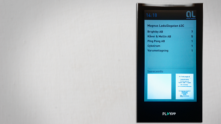 -Tidigare innebar en avflyttning av en hyresgäst att vi var tvungna att ändra på skyltar och arbeten i fastigheten aviserades med lappar. Detta slipper vi med det nya systemet, det gör det lätt att förmedla information i realtid berättar Jonas.