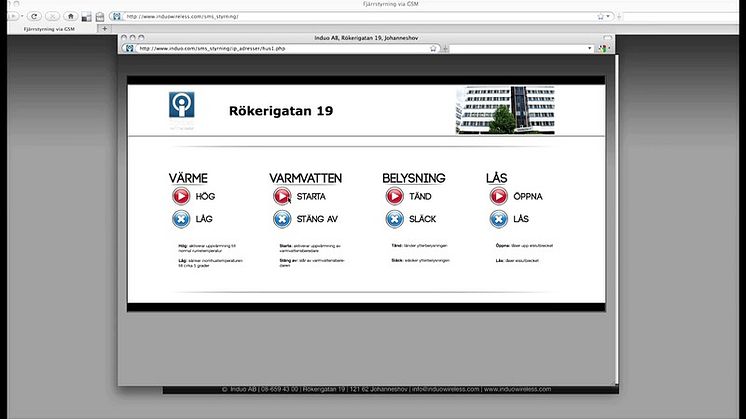 "Vi har löpande frågor om att styra via webben som komplement till mobilen. Den här lösningen har vi använt på ett par objekt under vintern. Vi har tagit fram detta internt och tjänsten är enkel men fungerar utmärkt för enkla fjärrstyrningssituationer" säger Ulf Seijmer, marknadsansvarig på Induo,