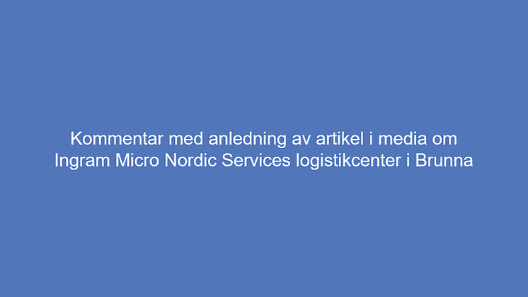 I en artikel i Expressen har det förekommit felaktiga och ogrundade uppgifter om arbetsmiljön på Ingram Micro Nordic Services logistikcenter i Brunna. Med anledning av detta vill vi lämna följande bakgrund och kommentar.
