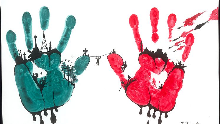 - Det är en ensamkommande ungdom som gjort bilden, Taj Khanzada, berättar Ingrid Eckerman, en av redaktörerna för boken och grundare av nätverket Stoppa utvisningarna till Afghanistan! Vi som har hört de ensamkommande barnens och ungdomarnas berättelser förstår precis vad bilden uttrycker. Flykten från den våldsamma tillvaron i hemlandet var farlig. Vi vet inte hur många som dog på vägen. I Europa hägrade ett nytt liv med fred, kärlek, natur.