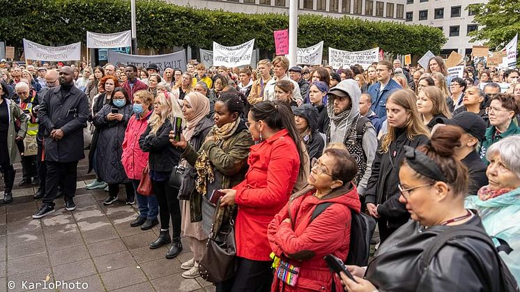 Sedan valet har demonstrationer mot rasism ägt rum på flera håll i Sverige. Den hittills största var på Norrmalmstorg lördag 17 september. Cirka 3 000 människor, vita, bruna och svarta, täckte torget. Många var unga. Stämningen var mycket god.