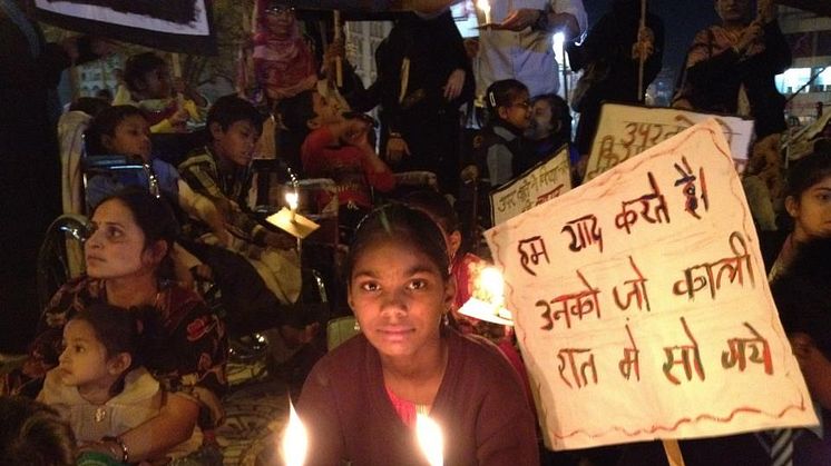 First were the disabled children of Chingari Trust, a habilitation centre for the children and grandchildren to the victims as well as for those living in the area where they drink the polluted water. They performed a silent sit-in in one of the most traficated road crossings. Candles, signs and all the children in weelchairs caused great attentiong from bypassers and media.